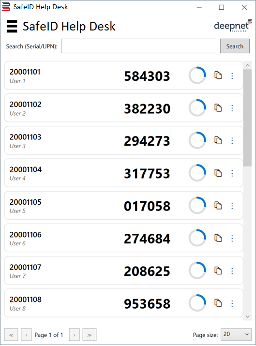 SafeID Help Desk is a Windows application built for help desk personnel. It allows teams to generate TOTP codes on behalf of users who have lost access to their authenticator devices but require immediate entry to secured applications. The application efficiently manages large token inventories and allows for the rapid retrieval of credentials associated with specific users.