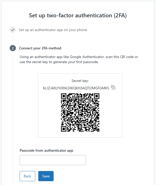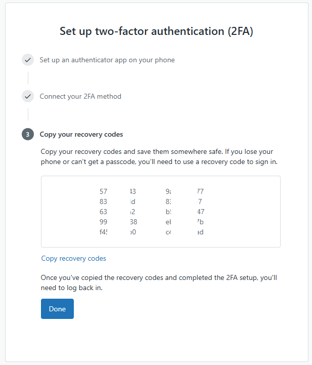 You will then be presented with a list of backup codes (example below) - we suggest you keep a copy of this list;