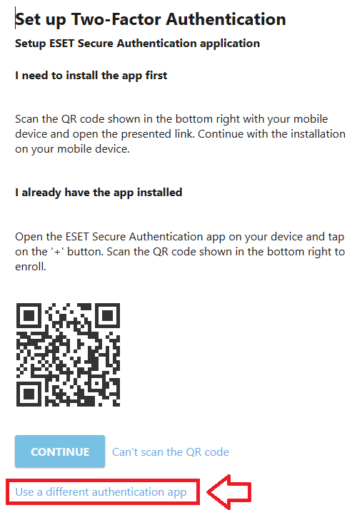 Click on , and you will be presented with a QR code, click on "Use a different authentication app";