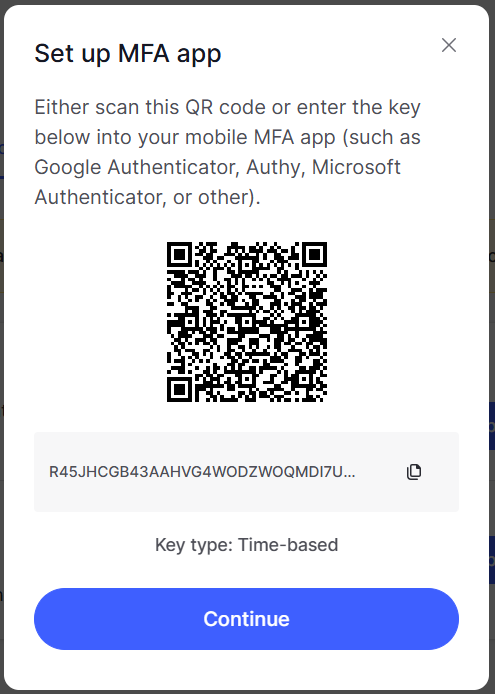 Verify your account (in the above example by entering the code sent to your email account), and a list of authentication options will be displayed.
