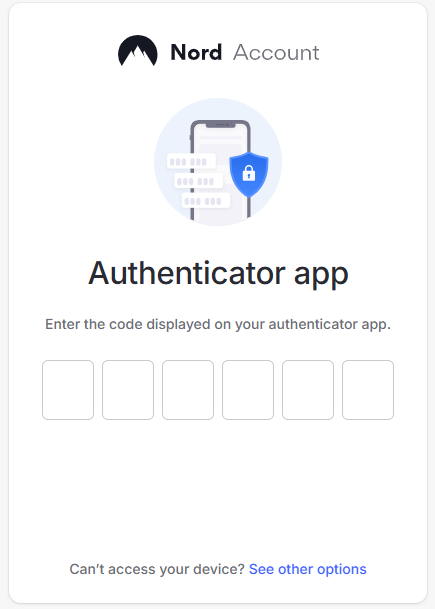 Once you have programmed your token you will need to verify it with Nord by supplying a 6 digit code from your programmable token;