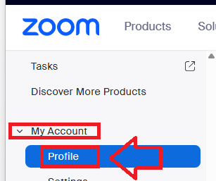 Log in to your Zoom Account, use the dropdown "My Account" to select "Profile";