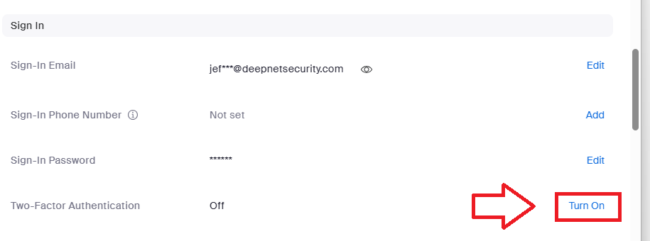 Then in the section "Sign In", use the link "Turn On" to turn on Two-Factor Authentication;
