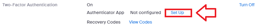 Two factor authentication will now be enabled, but now needs to be prepared on your hardware token, click the link "Set Up";