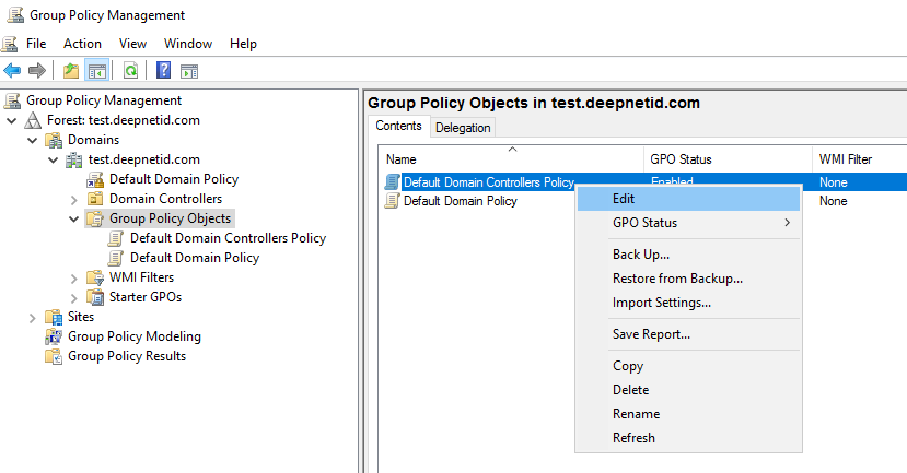 - Navigate to the AD forest and Domain containing your server, double-click your server and double-click Group Policy Objects.