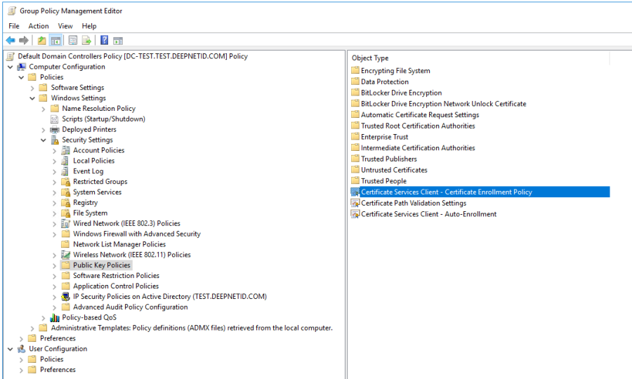 - Expand Computer Configuration > Policies > Windows Settings > Security Settings > Public Key Policies.