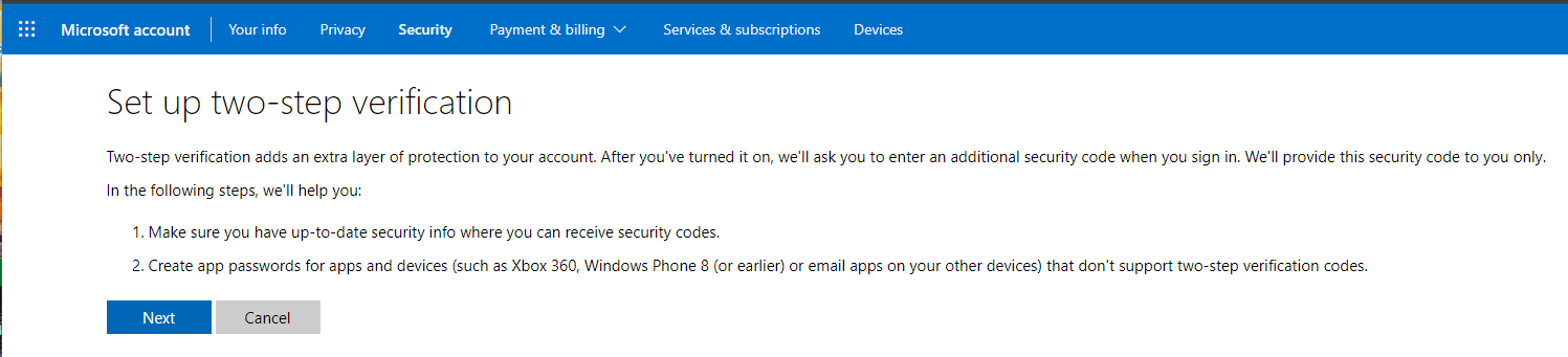 In order to enable Two-step verification, click on the "Turn on" option as indicated above, and you will be asked to confirm that you want Two-step verification enabledd;