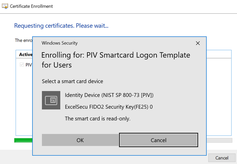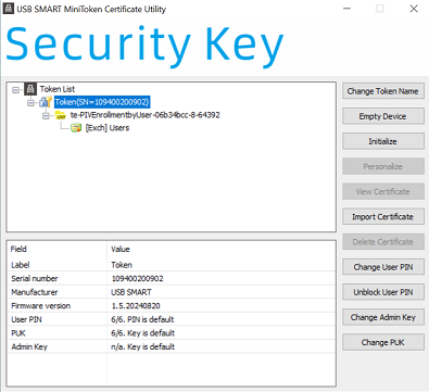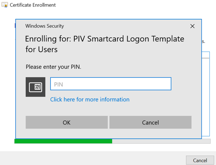 - Enter your key 's PIV PIN and then click OK. If that PIN has not been set, enter the default PIN:123456.