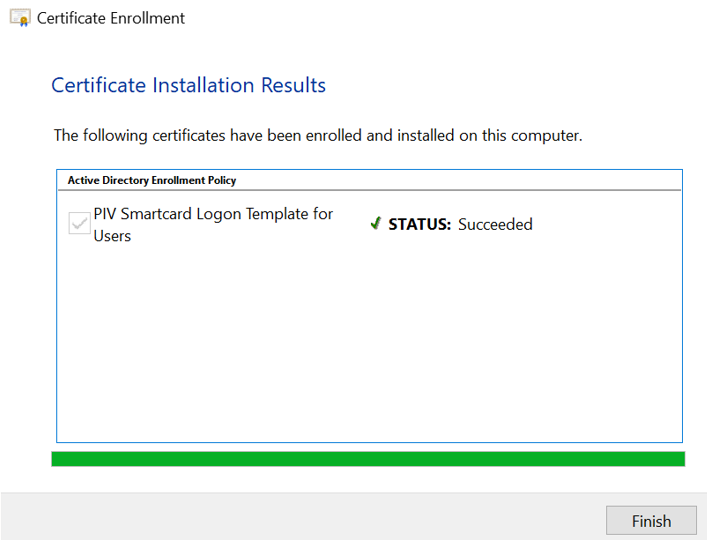 - Windows will enroll the for Windows login. After the process succeeds, click Finish.