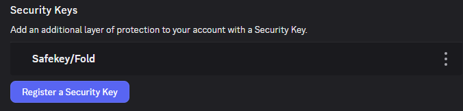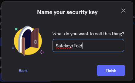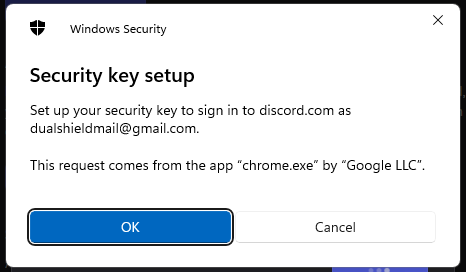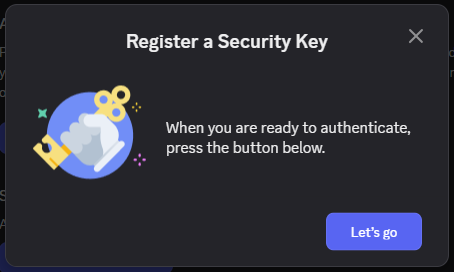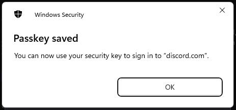 You are now notified that access to Discord will be prepared with your Fido2 security key - click