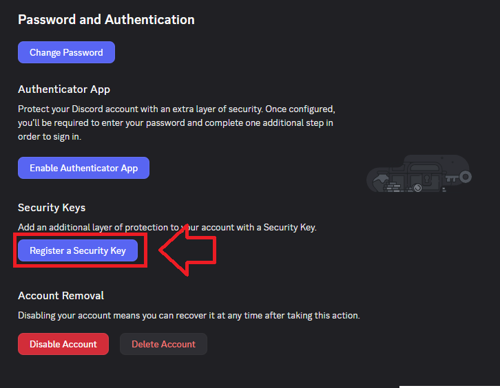 Select "My Account" from the left hand column menu, then scroll down to the section "Security Keys", click on the button