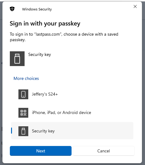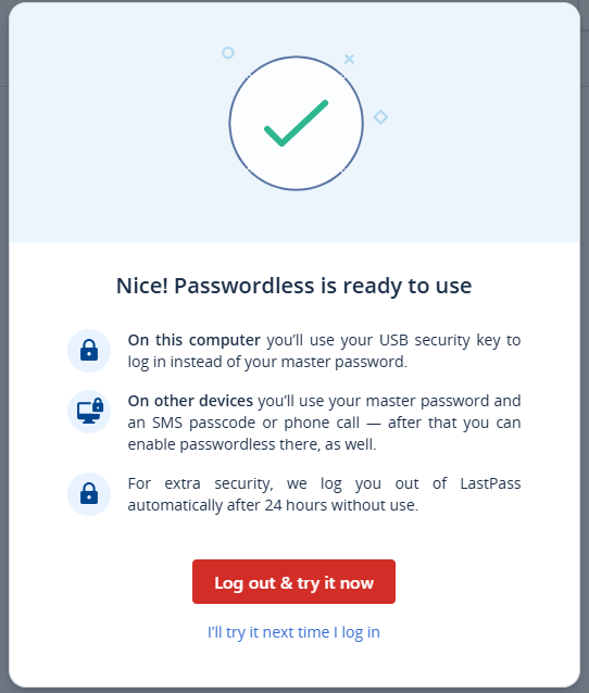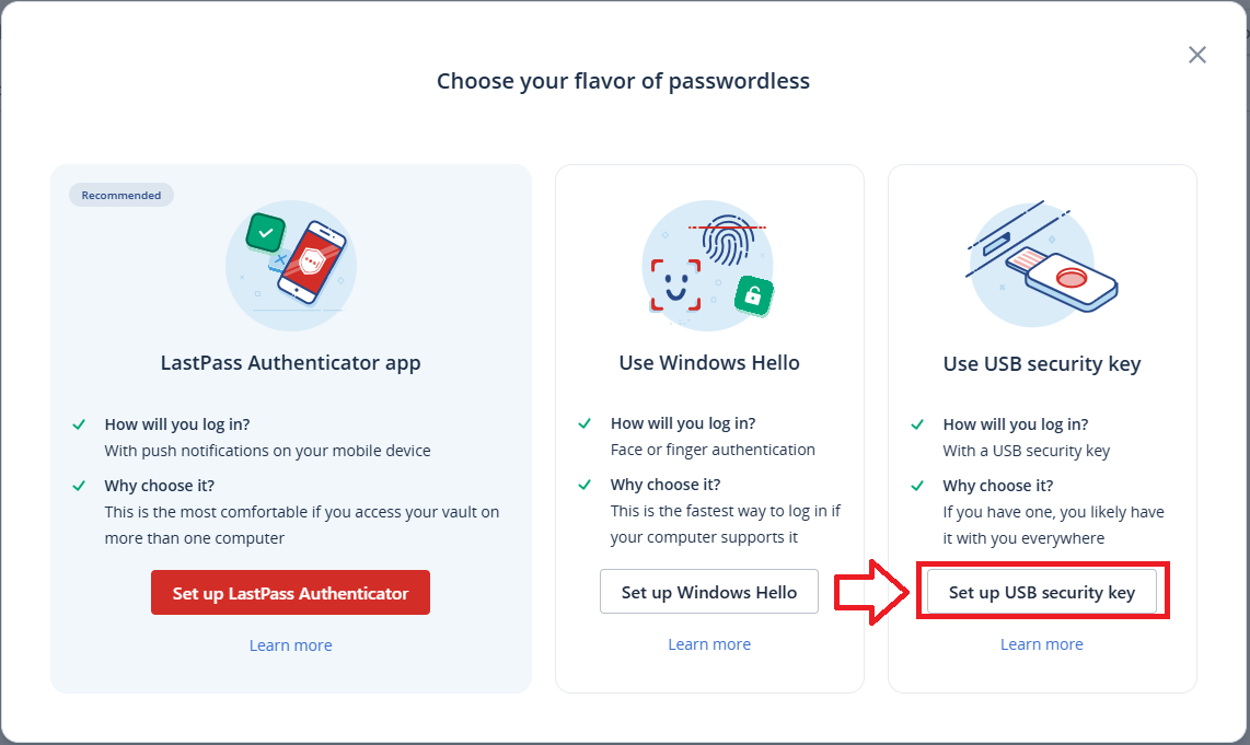 Once you have registered your FIDO2 key with Lastpass, the key will be ready to be used as an authentication method when accessing your account.