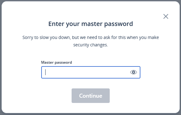 Select the option "Set up USB security key", and you will be prompted for you master password;