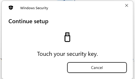 You will now be asked to touch the Fido2 key (in the case of a Fido key with a fingerprint reader you will need to swipe your finger on the key);