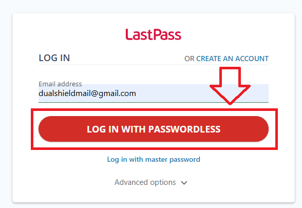 - Log in to your LastPass user account, and after supplying your username you will be offered the option for passwordless login;