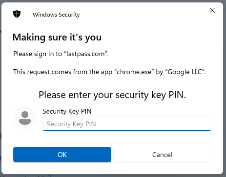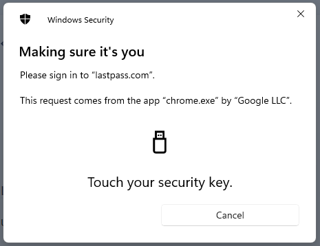 Before you can use your FIDO2 key as an access method for your Lastpass console you will need to register the key with LastPass using the following procedure;