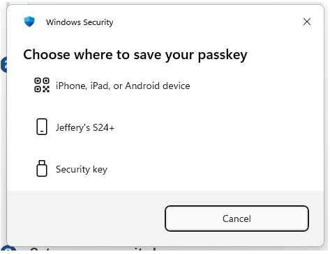 Provided you press the button on the Fido2 key in the allowed time, the passkey details will be stored on your Fido2 key, and you will be presented with the following confirmation;