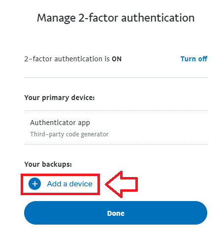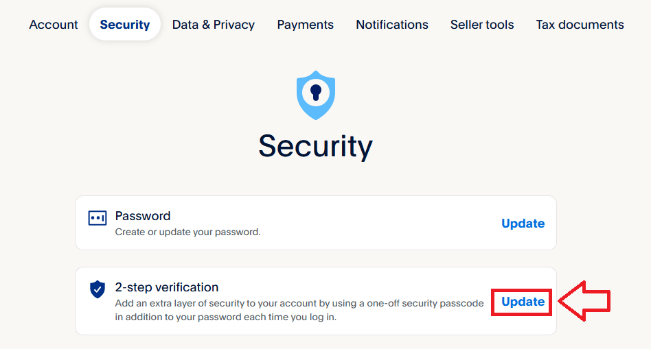 A list of authentication method options will then be presented, against the option for "2-step verification", click on "Update";