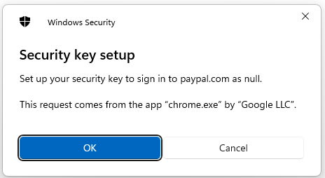 Click "OK", and the FIIDO2 key will be registered with eBay, and you will be shown confirmation that the passkey has been added;