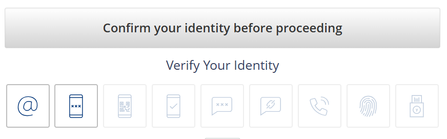 Before adding an new authentication method you will first need to confirm your identity using one of the currently added methods;