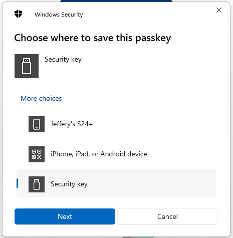 You are now notified that access to google will be prepared with your Fido2 security key - click