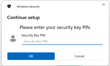 You will now be prompted to enter the PIN code for your Fido2 key.