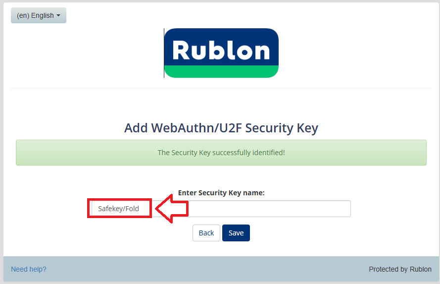 Once you have registered your FIDO2 key with Rublon, the key will be ready to be used as an authentication method when accessing your account;