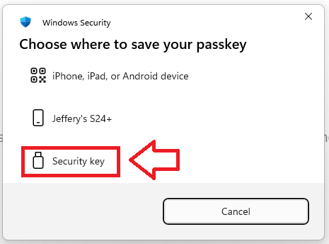 In order to add a Fido key as an authentication factor you will now need to select "Security Key", then click