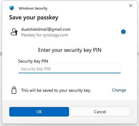 Once you have touched the Fido2 Key will need to verify it is you that is about to add this new device as an authentication method.