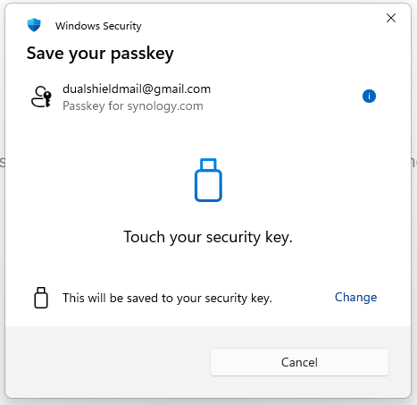 You are now prompted to touch the key (to prove you are present and giving permission for the key to be used).