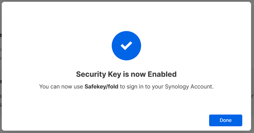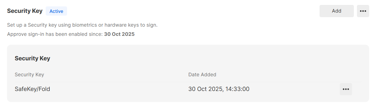 The Fido key will now be added as an active authentication device (example below), and is ready to be used when you next log in to your account.