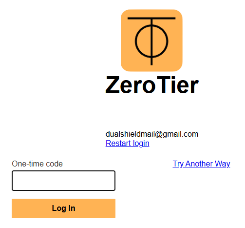• Log in to your ZeroTier Account by supplying your username and password.
