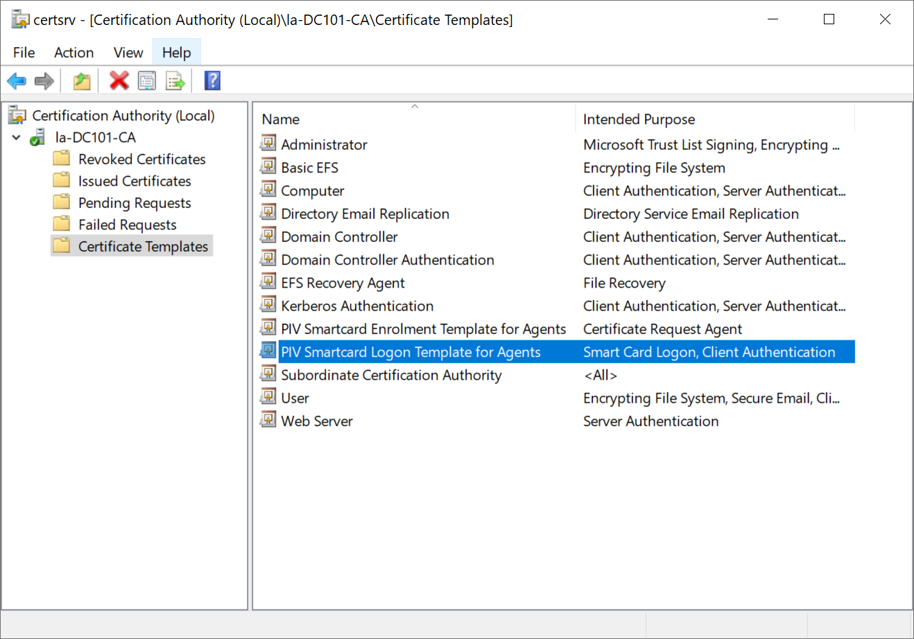 Repeat the same steps to publish the PIV Smartcard Logon Template for Agents