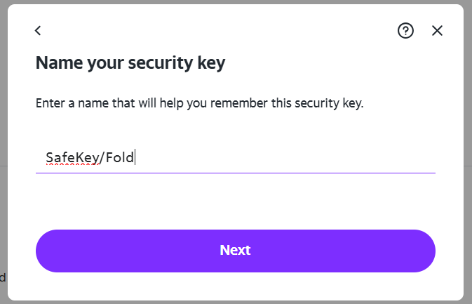 At the prompt "Enter a name that will help you remember this security key", type a suitable name then click ;