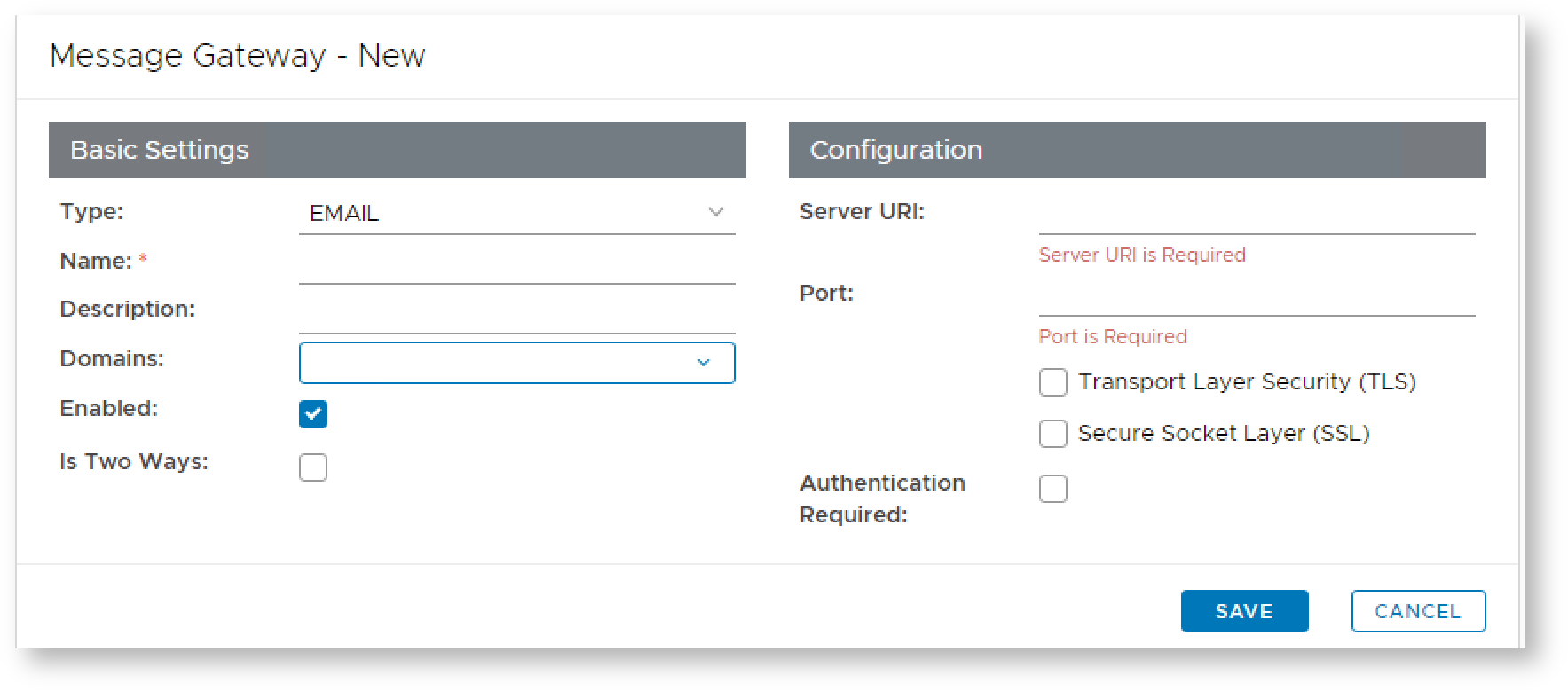 - Once the email gateway has been configured and tested you can save the newly created email gateway by clicking on "Save".