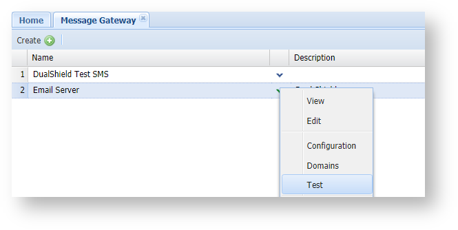 Once the email gateway has been configured it can be tested by using the context menu option "Test";
