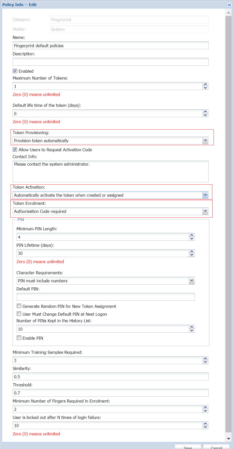 You will also need have to customise the fingerprint Fingerprint policy according to your needsrequirements. Select