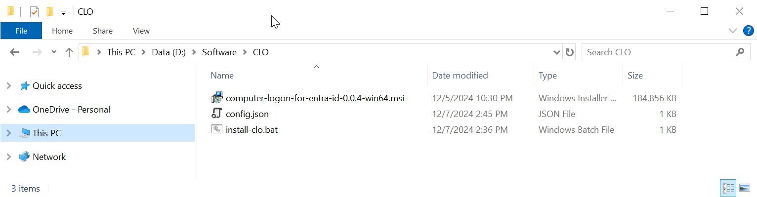 Download the off-the-shelf installer package and unzip it to a local folder on your PC, e.g. "D:\Software\CLO"