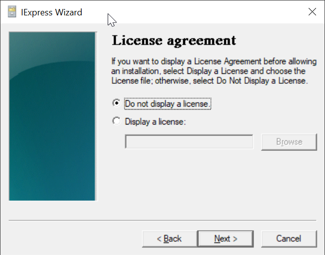 Select "Do not display a license"