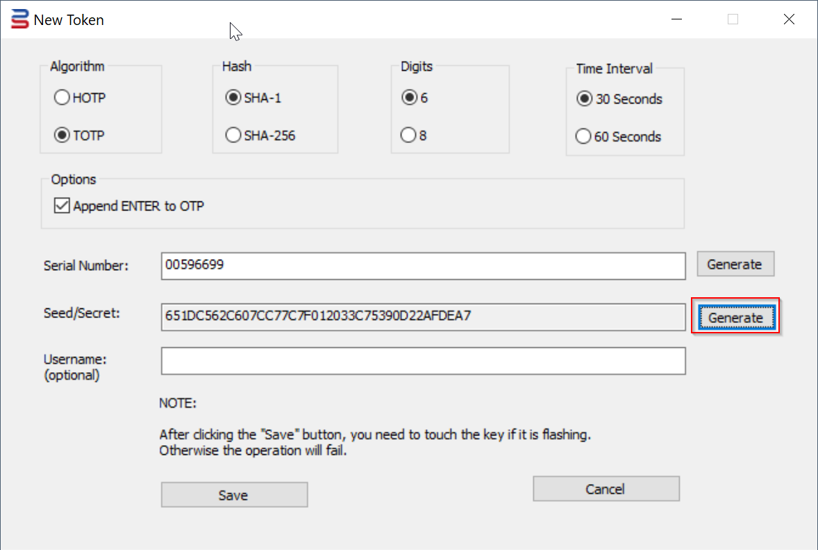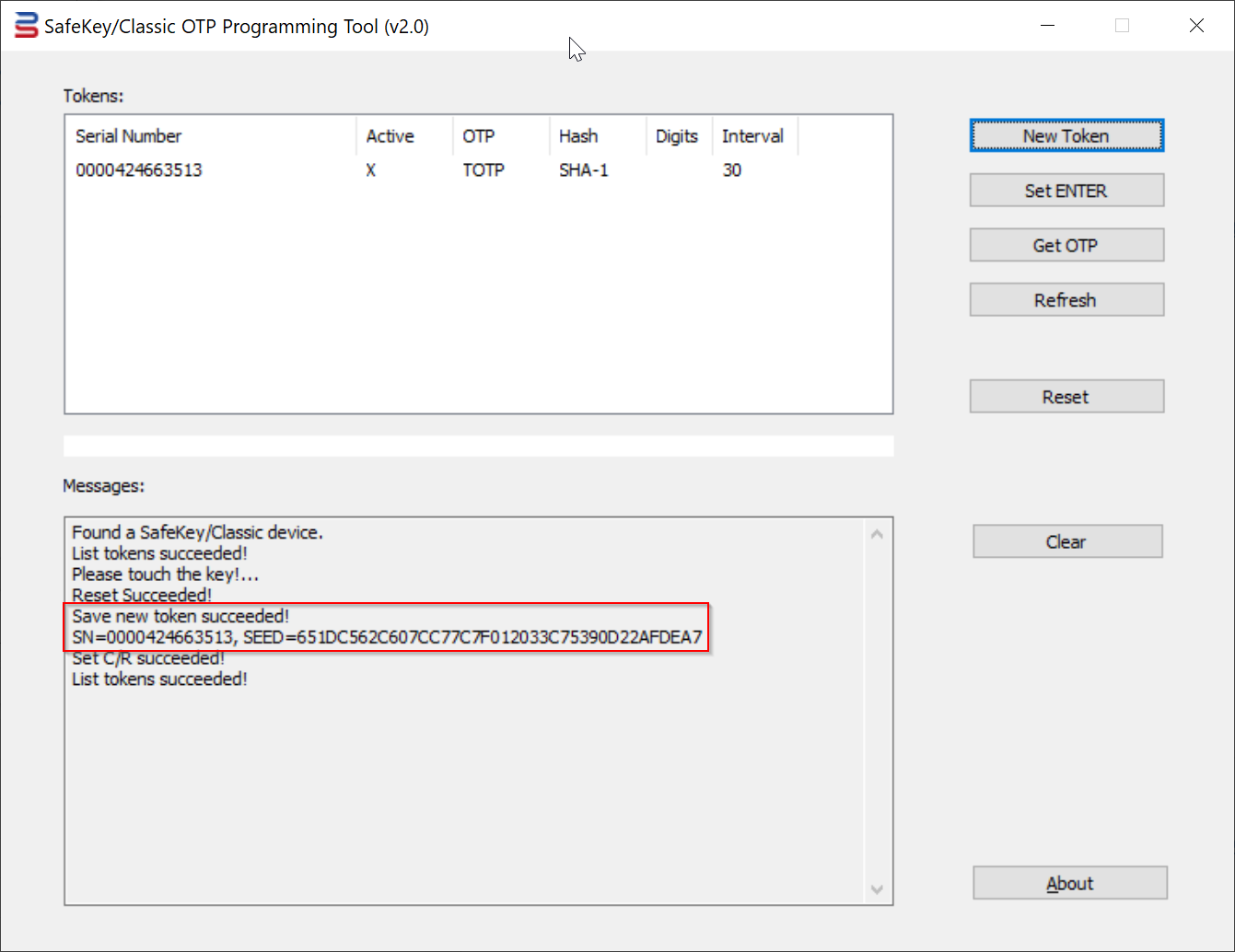 To program the SafeKey/Classic security keys as an OTP token, you need to use the SafeKey/Classic OTP Programming Tool.