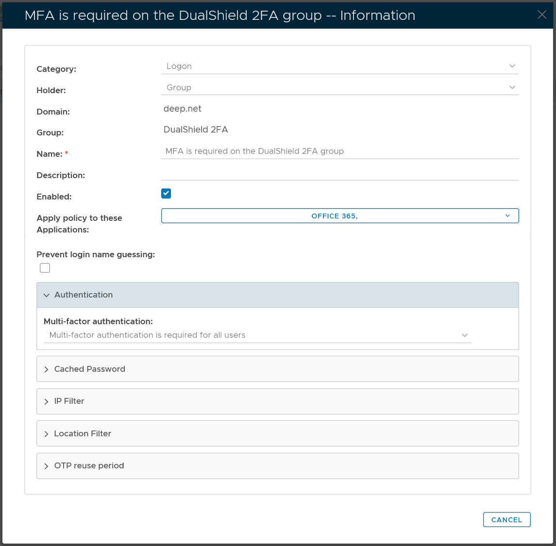 This option means that all users will be exempted from 2FA or MFA. This option is typically used to exempt a group of users from 2FA or MFA.