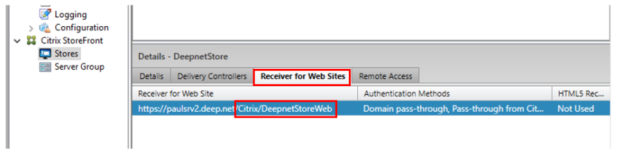 You can check the FQDN of your Storefront server under Stores > Receiver for websites on you Citrix StoreFront GUI.