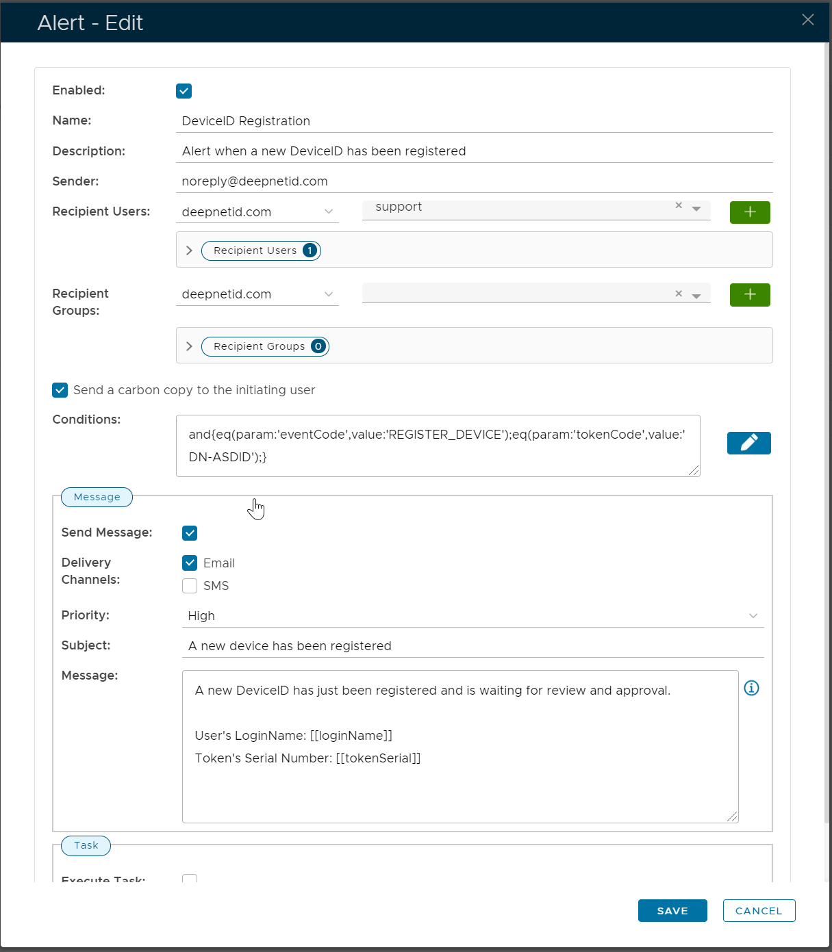 You might want to tick "Send a carbon copy to the initiating user" if you want the user to be notified as well.