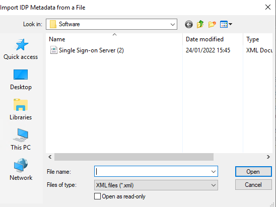 Follow the prompts to upload the IDP Metadata File you obtained from the DualShield Server. (refer to Dualshield Configuration Part 1)