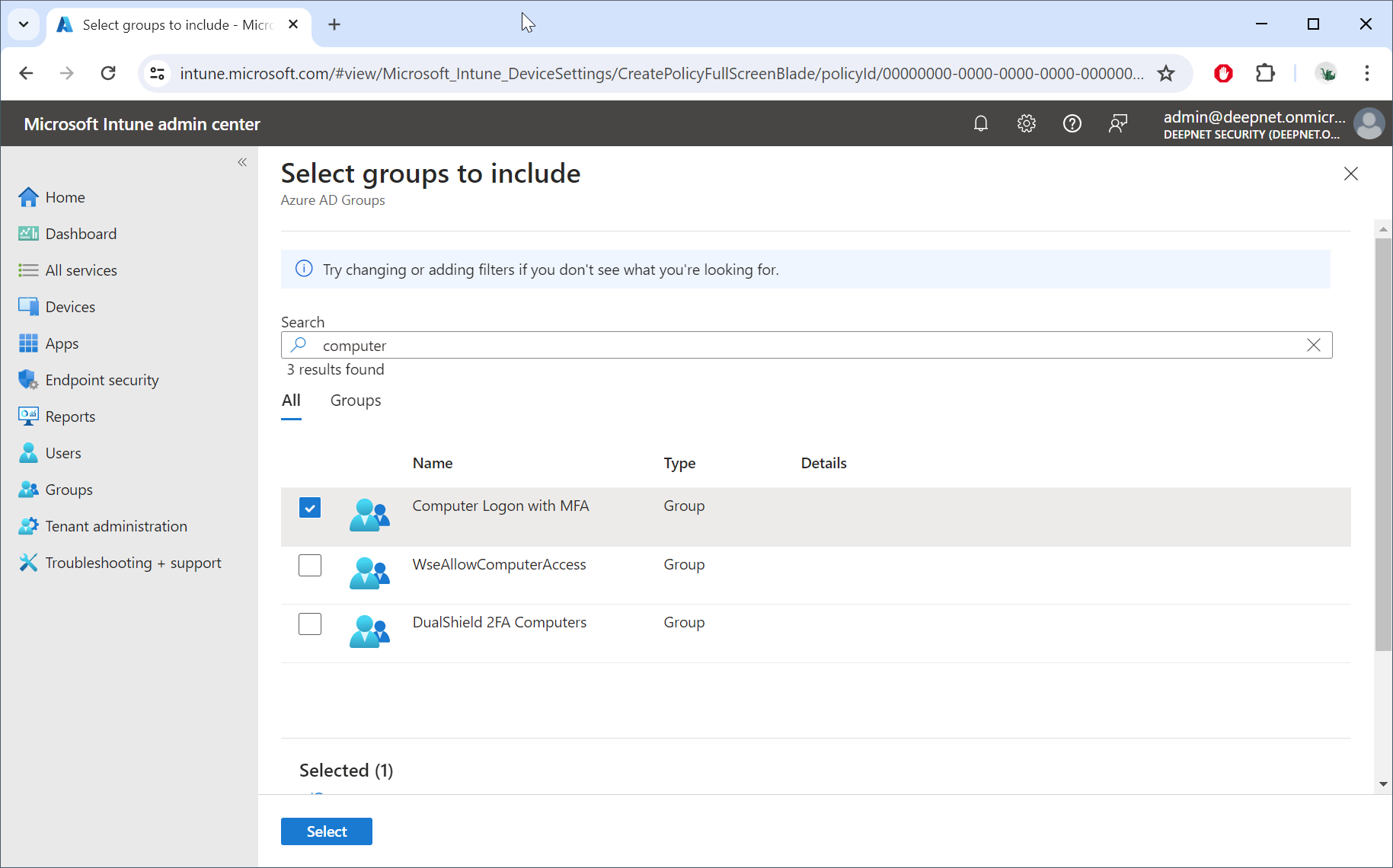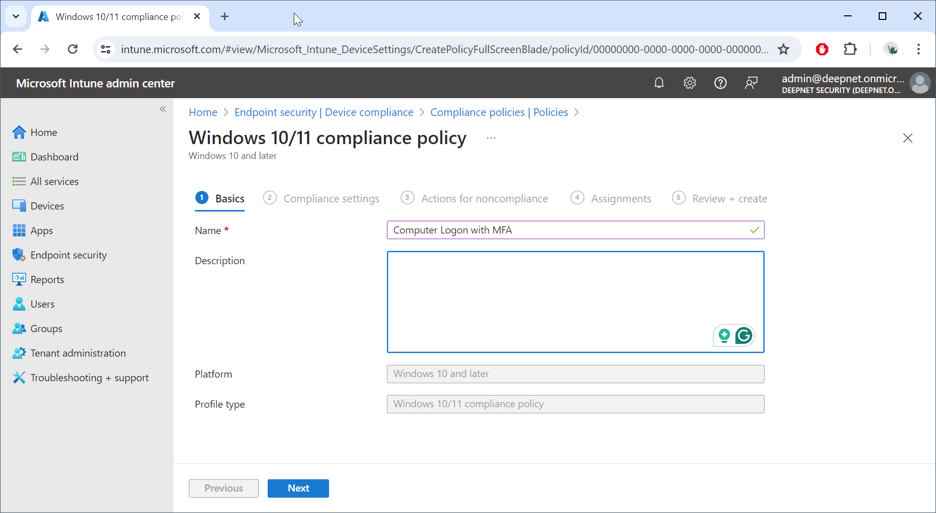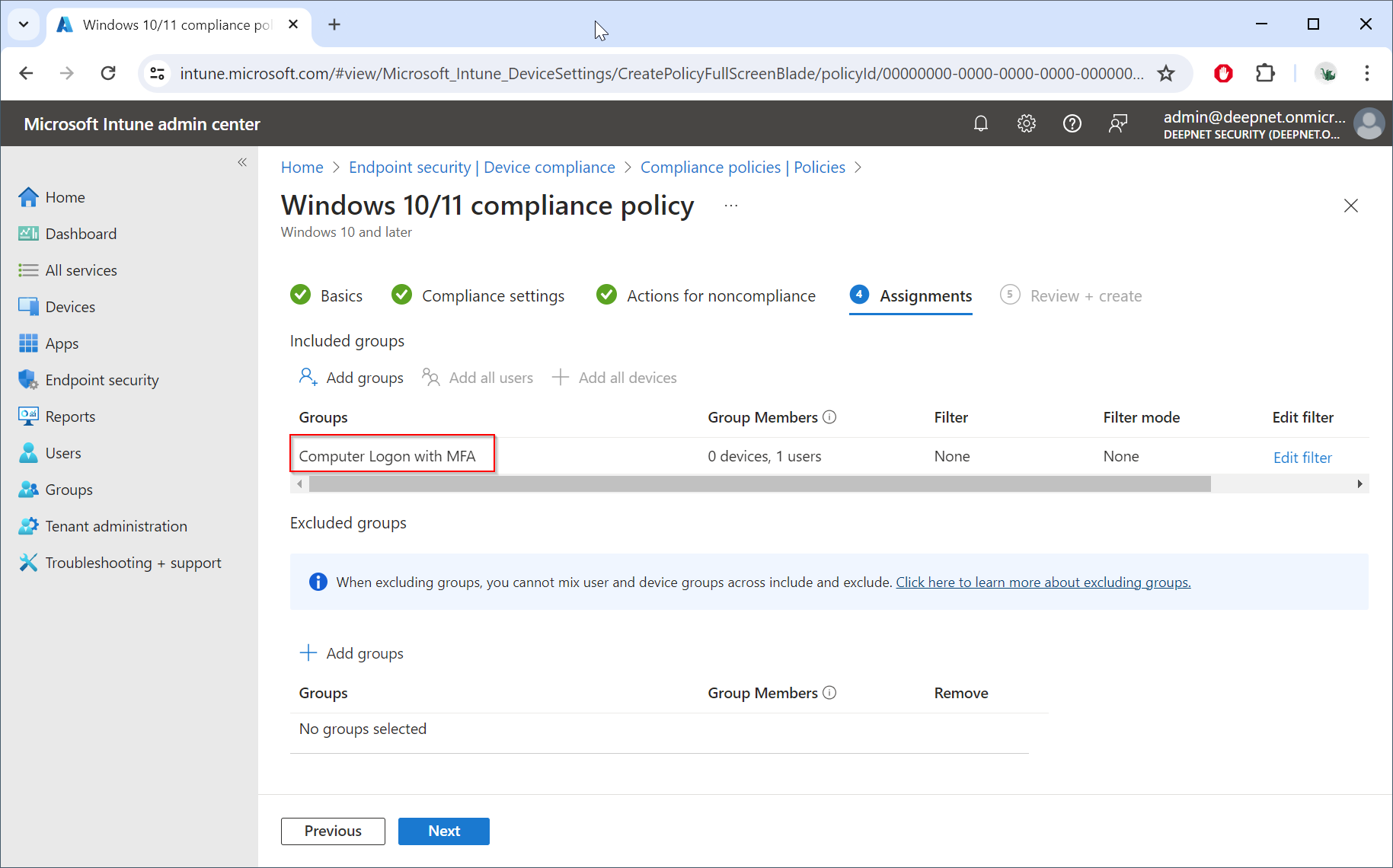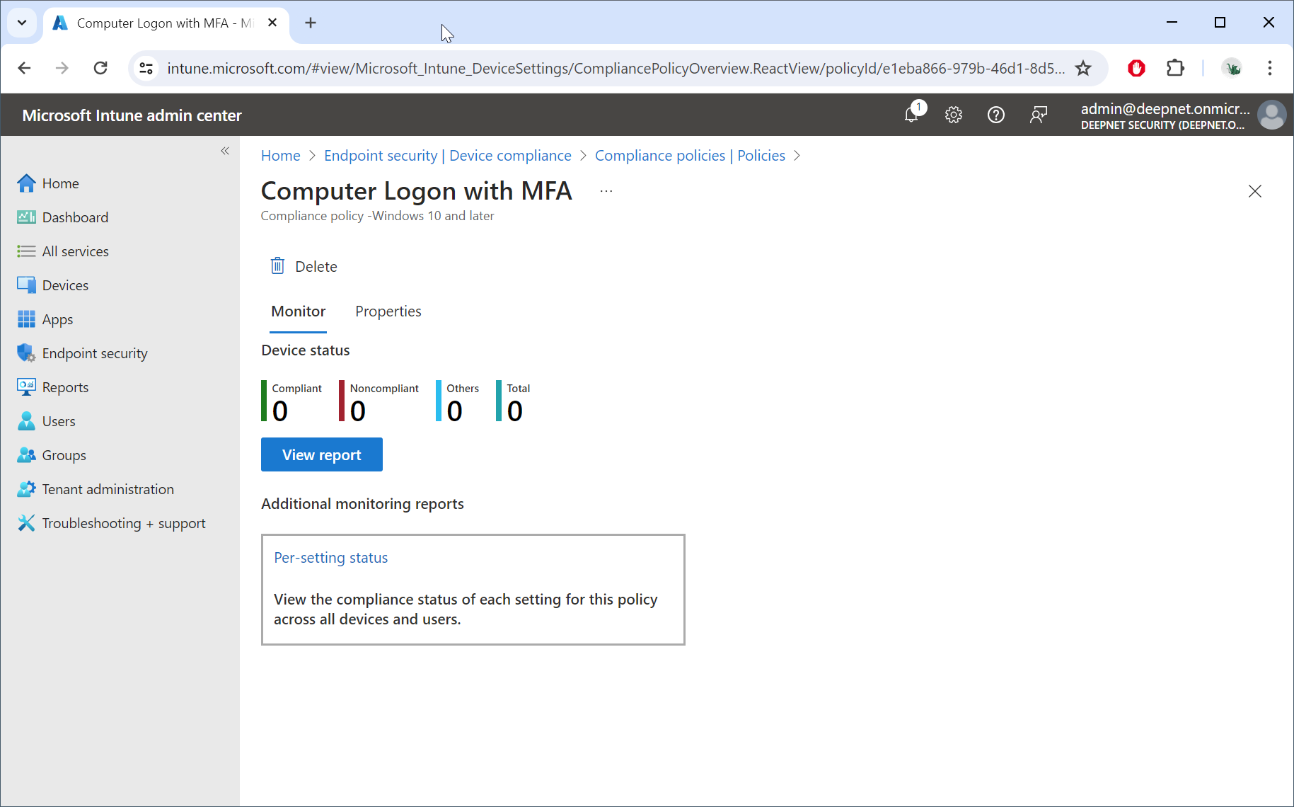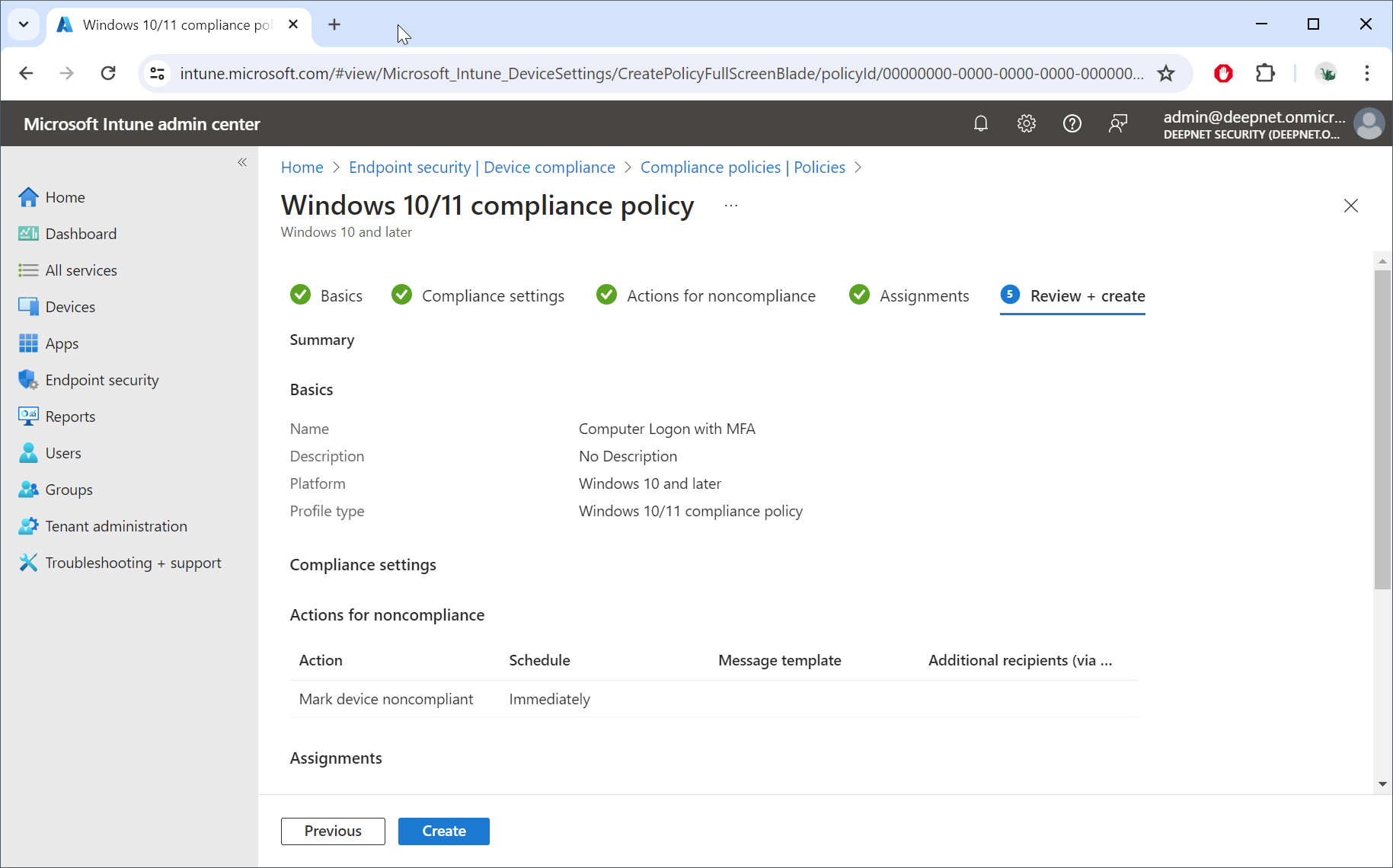 - Create an Intune device compliance policy for Computer Logon Modern Authentication