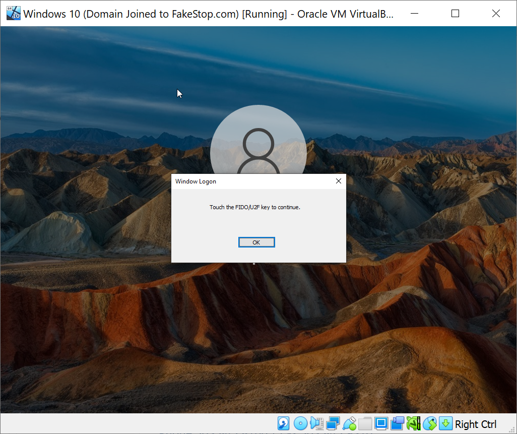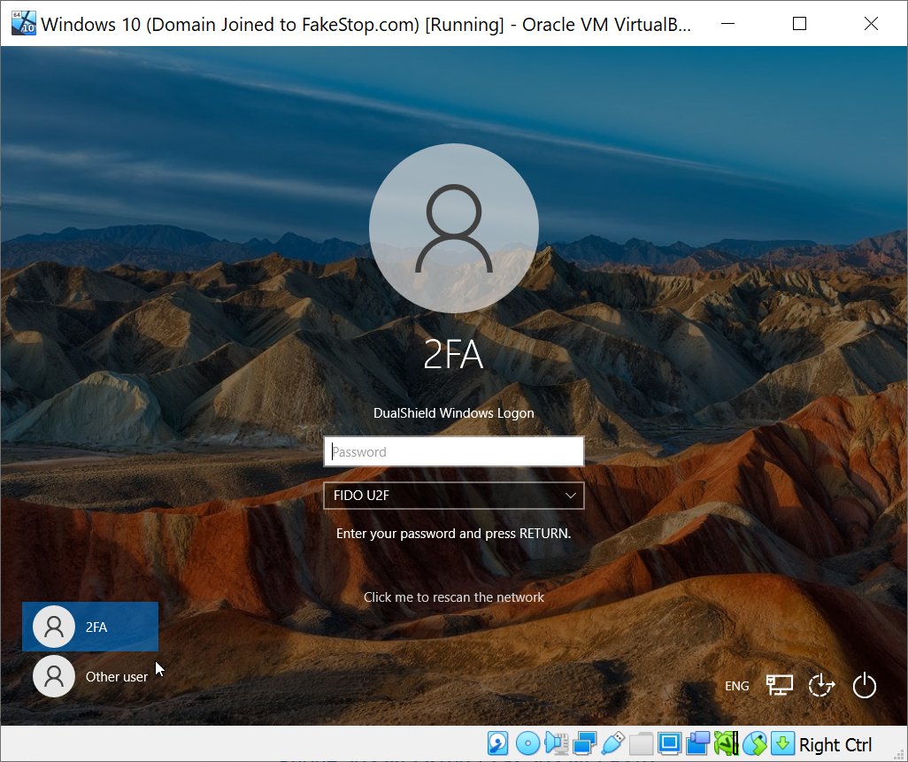 At the desktop login window, select FIDO U2F as the authentication method