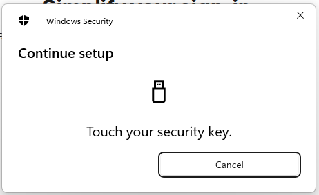 When asked where to save this passkey, select the option "Security Key", then click