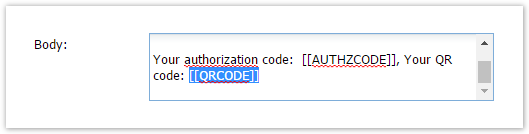 6. At the prompt "Body:" include the text "[[QRCODE]]".