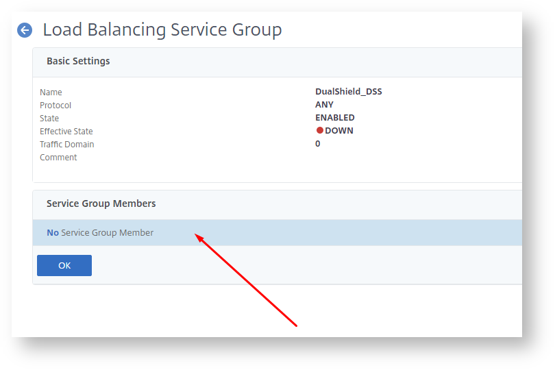 Now, we have create a service group called "DualShield_DSS" for the DualShield Self-Service Console. This group includes 2 real servers: "DualShield-Server_1" and "DualShield-Server_2"